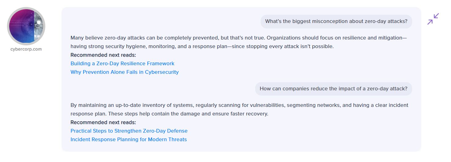 Empower visitors to ask questions about your product and content through an intelligent, LLM-powered chat. The system draws answers from your website content and provides accurate, instant replies and personalized follow-up readings.