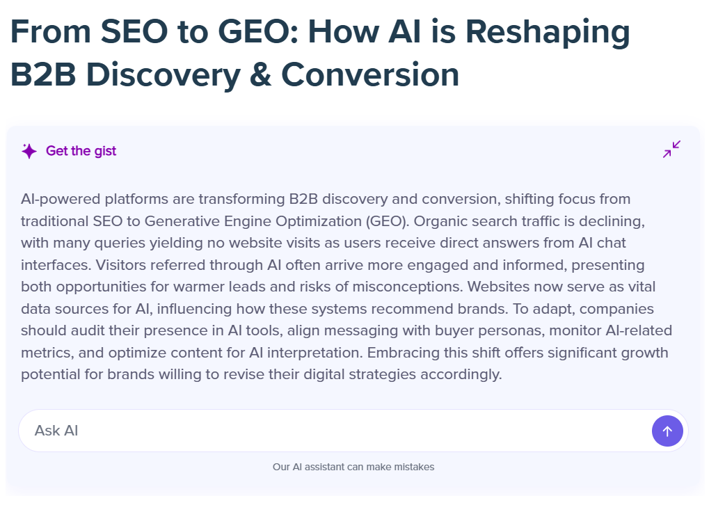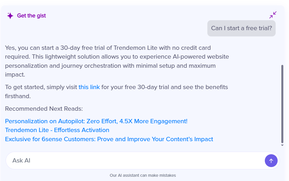ContexTiles transform static pages into dynamic experiences using personalized AI summaries and on-page chat. This keeps visitors engaged longer while uncovering intent by revealing exactly what buyers are looking for.